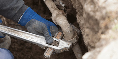 道路下のガス管の修理